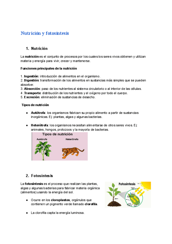 Apuntes completos de Nutrición y Fotosíntesis (resumen claro y esquemático)