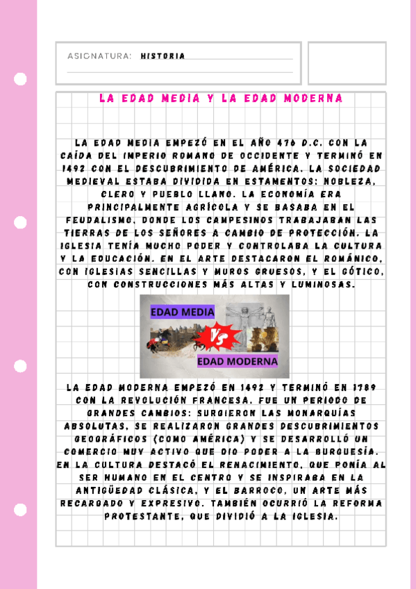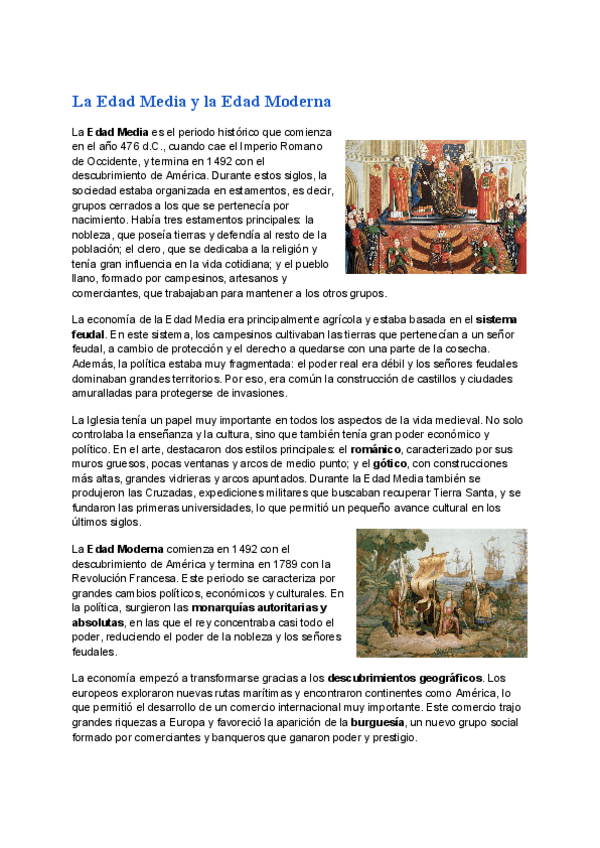Apuntes claros y completos sobre la Edad Media y la Edad Moderna.