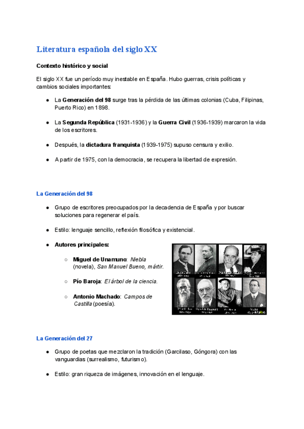 Apuntes actualizados y completos sobre la literatura del siglo XX.