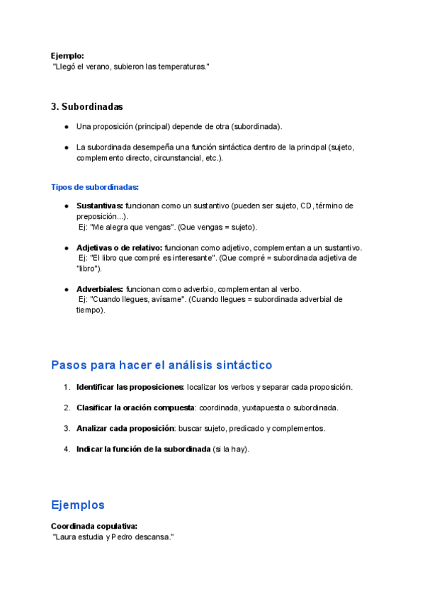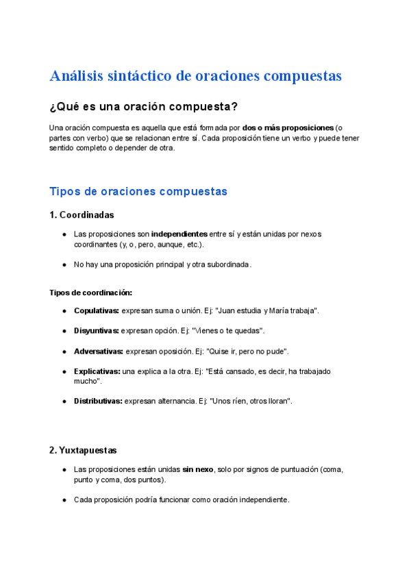 Apuntes claros y completos sobre las oraciones compuestas.