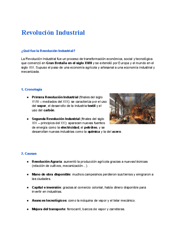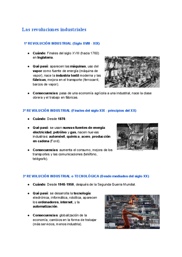 Apuntes claros y ordenados sobre las revoluciones industriales.