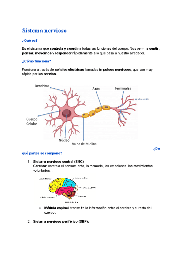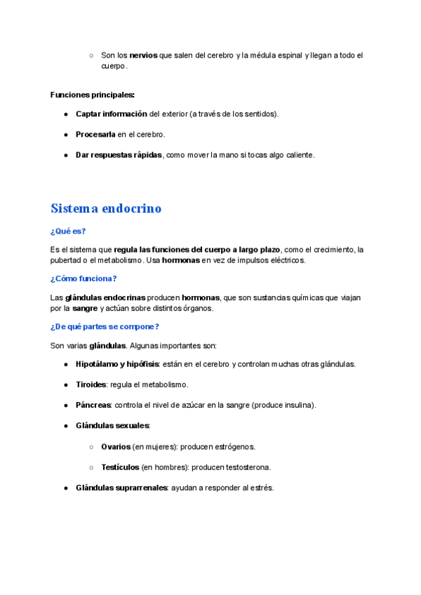 Apuntes claros y actualizados sobre el sistema nervioso y el sistema endocrino.