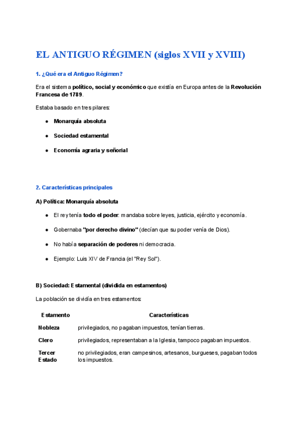 Apuntes claros y actualizados del Antiguo régimen para nivel de 3º de la ESO