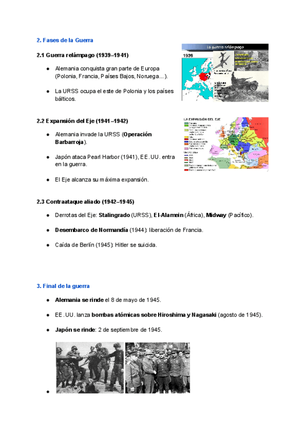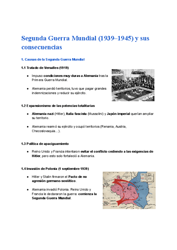 Esquema claro y ordenado sobre la Segunda Guerra Mundial y sus consecuencias.