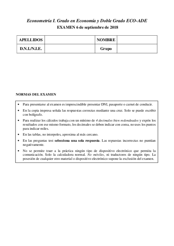 He publicado nuevos examenes de 2º Introducción a la Econometría para las Finanzas: Examen-Junio-Septiembre-2018.pdf