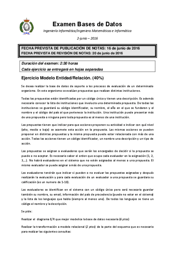 He publicado nuevos examenes de 2º Bases de Datos: examenes finales con solucion