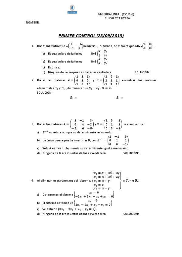 He publicado nuevos examenes de 1º Álgebra Lineal: Todos los Examenes de Años Anteriores