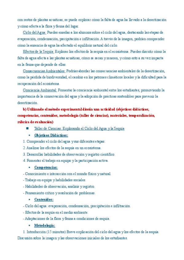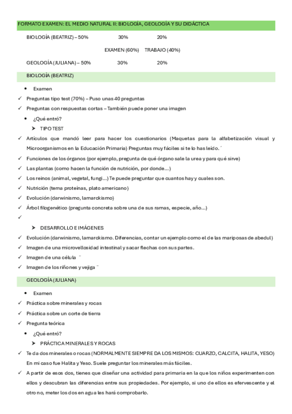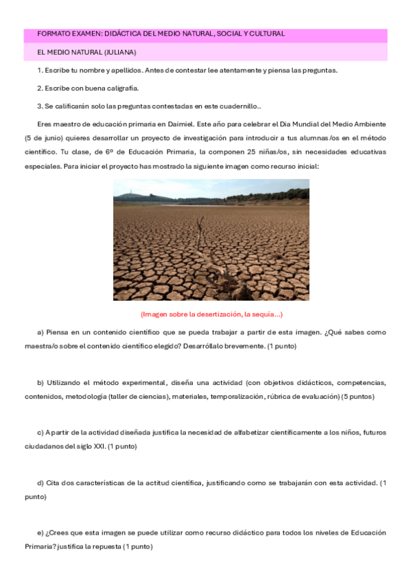 Examen con posibles respuestas a dar para el examen de didáctica del medio natural