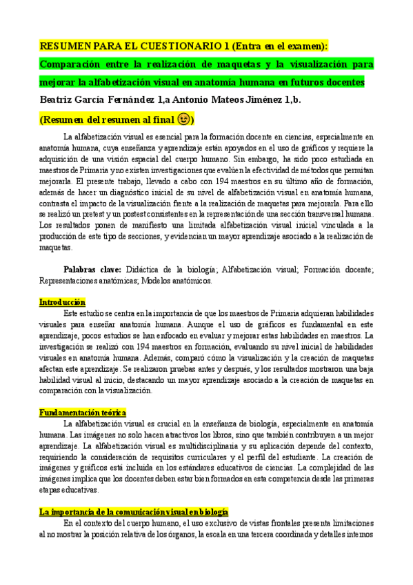 Resumen del articulo ``Comparación entre la realización de maquetas´´. Tanto para realizar el cuestionario como para el examen.