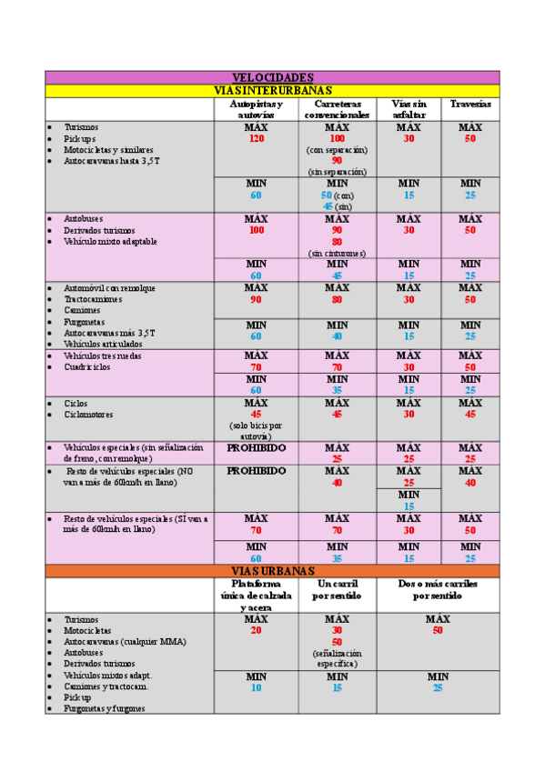 APUNTES TEÓRICO CLASE B COCHE 2025. Muy resumidos con lo más importante, tabla de velocidades muy completa y agenda de test al final.