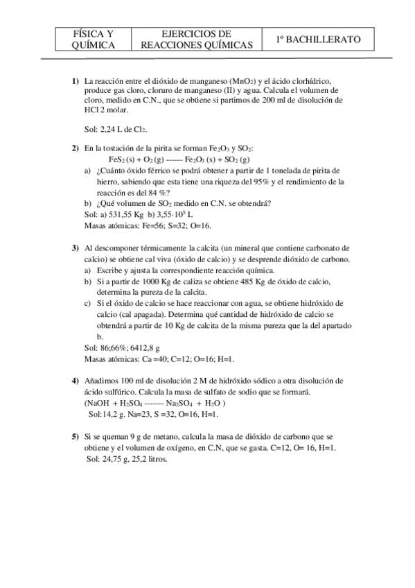 He publicado nuevos ejercicios de 1º Física y Química: Ejercicios-reacciones.pdf