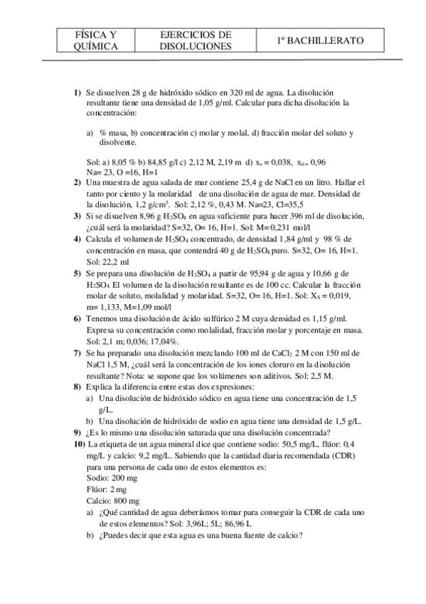 Ejercicios de primero bachillerato, con todo tipo de problemas.