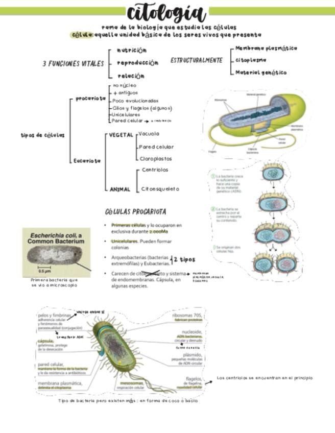 Apuntes de los tipos de células, con la función y estructura de los orgánulos. También dos esquemas súper bien explicados de tejidos tanto animales como vegetales.