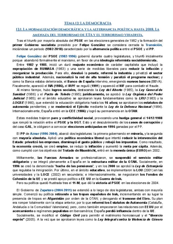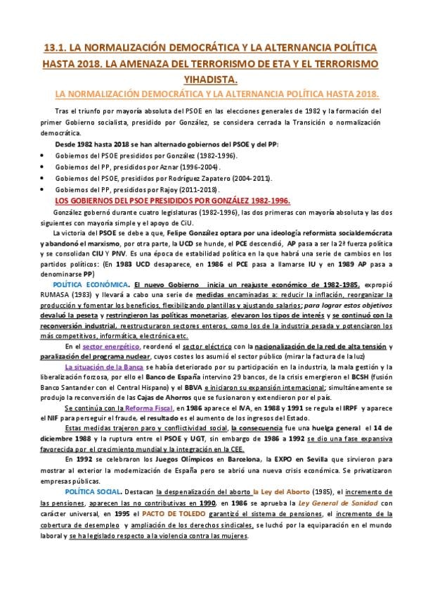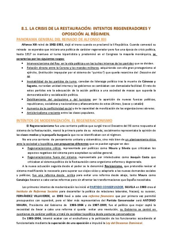 BLOQUE III: EL SIGLO XX ESPAÑOL RESÚMENES PAU