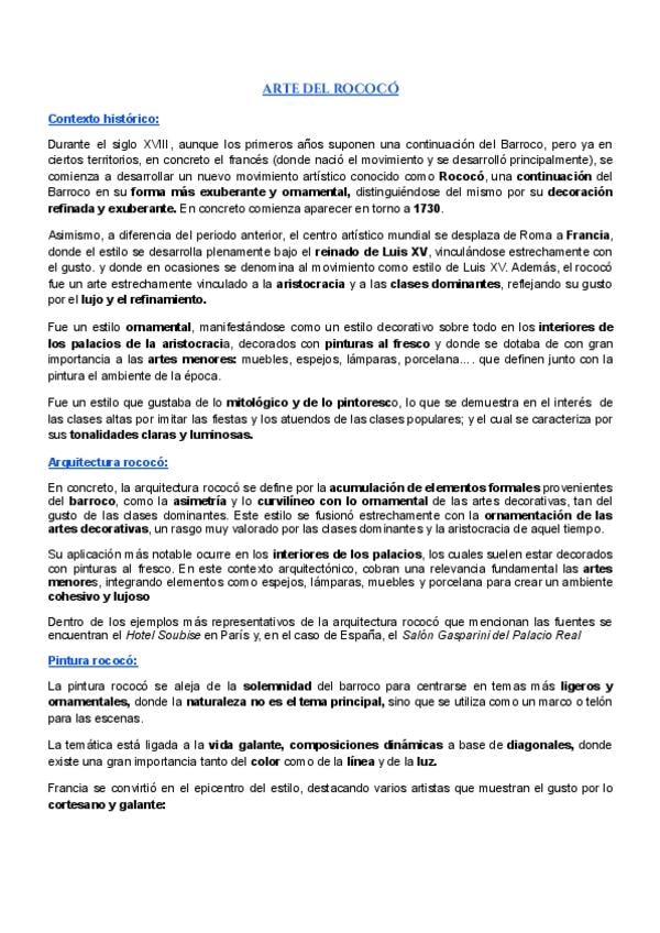 He publicado nuevos apuntes de 2º Historia del Arte: ROCOCÓ