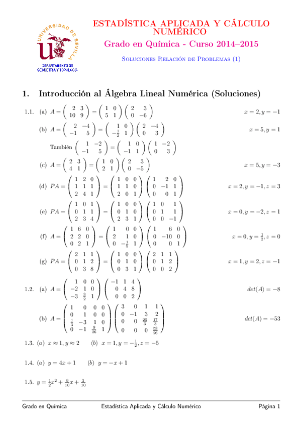 He publicado nuevos ejercicios de 1º Estadística Aplicada y Cálculo Numérico: hojas de problemas con solución