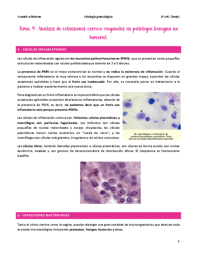 He publicado nuevos apuntes de Citología ginecológica: TEMARIO 23/24