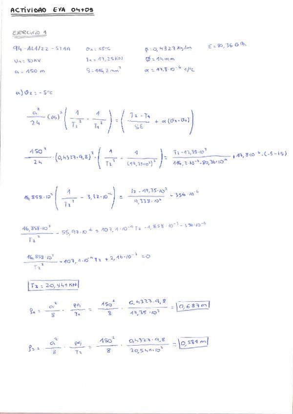 He publicado nuevos ejercicios de 3º Líneas Eléctricas: Cálculo ecuación de la catenaria y acciones sobre la línea