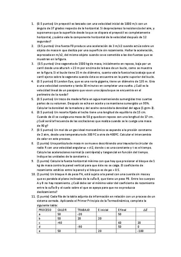 He publicado nuevos examenes de 1º Física 1: Cuestiones de Exámenes