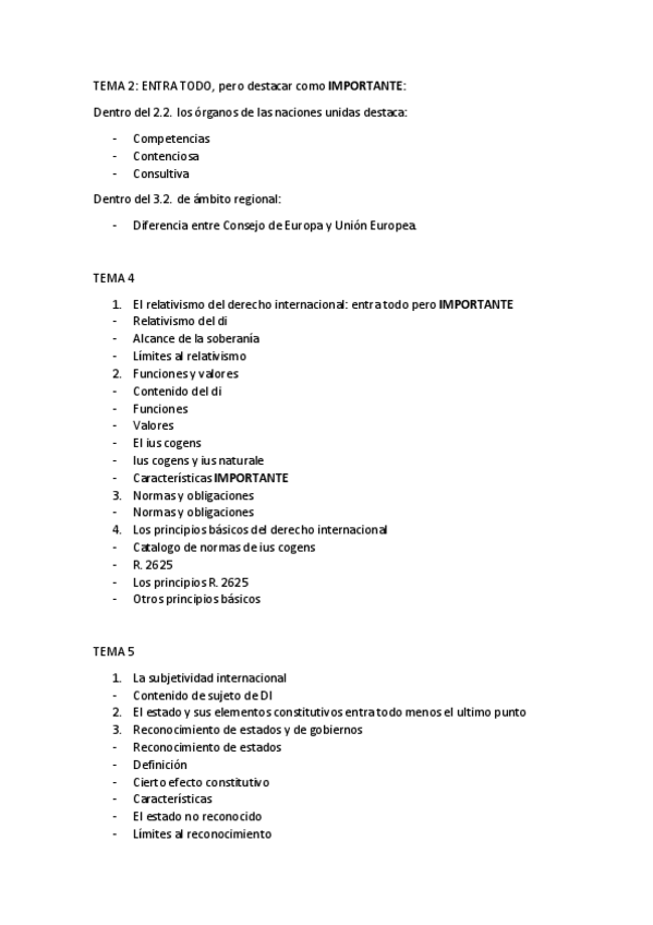 Contenidos que entran o no y si es importante o muy importante (conta más importante, más probabilidades de preguntarse)