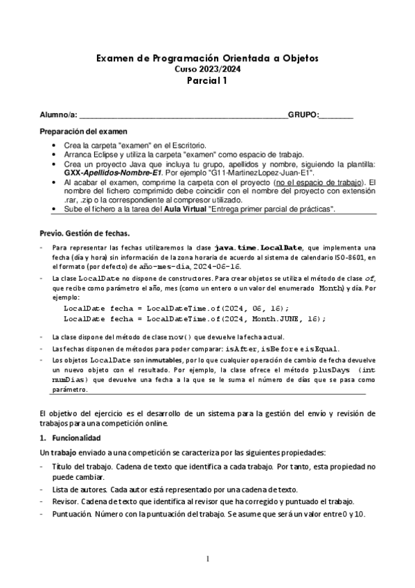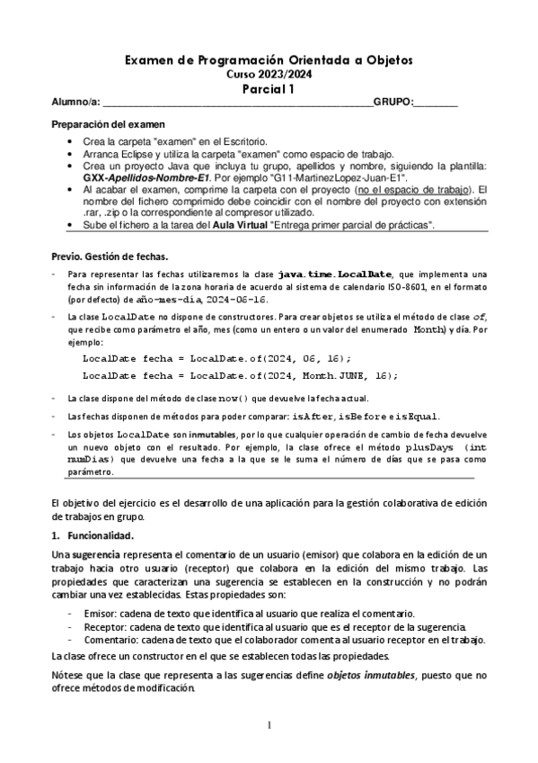 He publicado nuevos examenes de 2º Programación Orientada a Objetos: Parciales 01 2023-2024