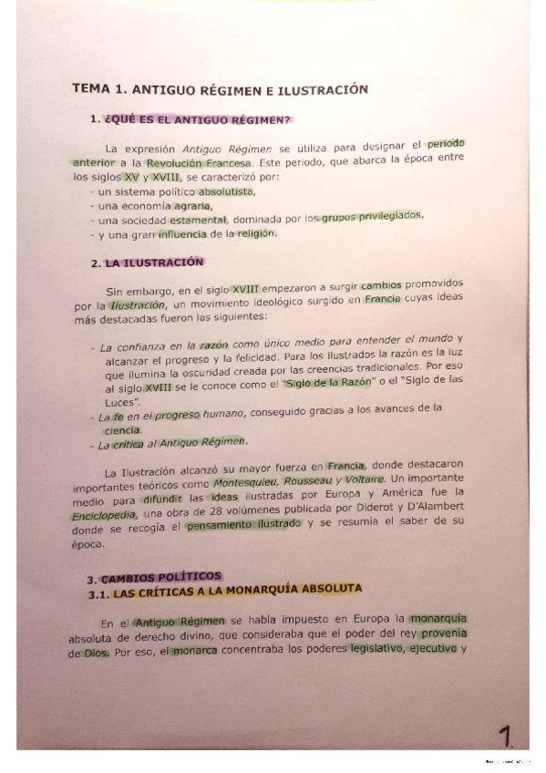 Apuntes claros, detallados y subrrallados sobre el Antiguo Régimen e Ilustración con unos ejercicios al final como practica :D