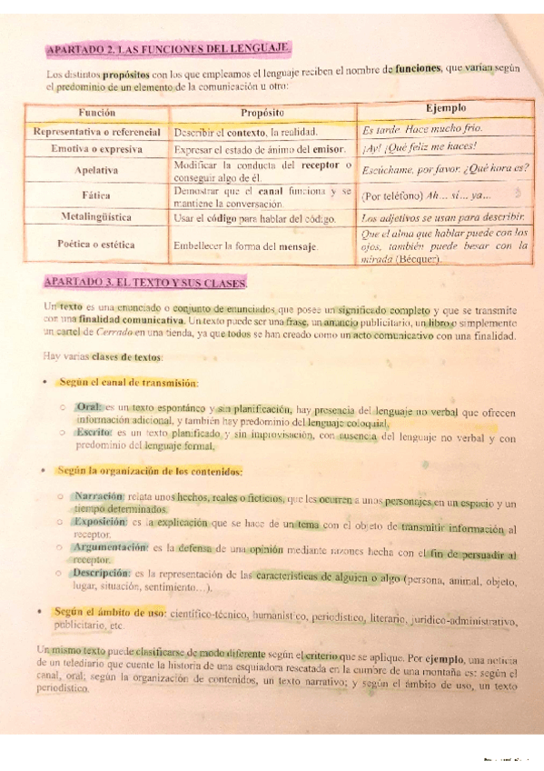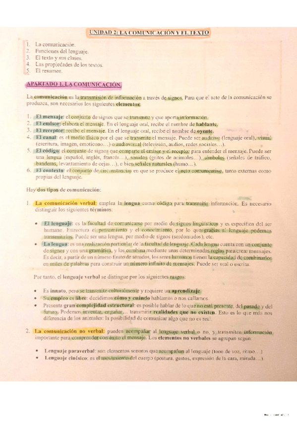 Apuntes de la comunicación, subrayados y distinguidos por colores. :)
