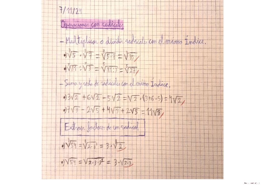 Operaciones con radicales