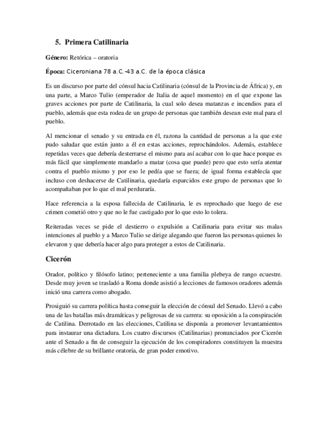 He publicado nuevos apuntes de 1º Latín 1: Primera Catilinaria de Cicerón.docx