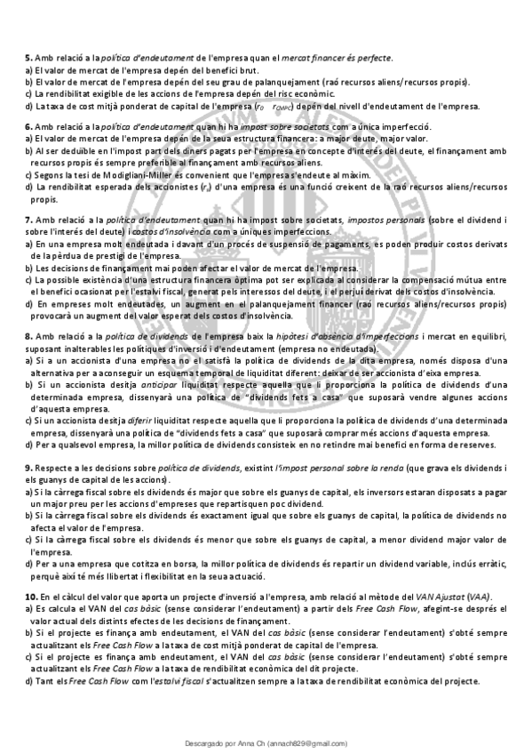 Resumen completo de 7 temas de la asignatura Teoría de la Financiación de 3º de ADE de la Universidad de Valencia