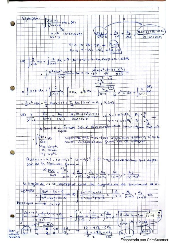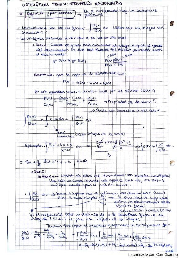 Apuntes de las integrales racionales, clasificadas por casos y con ejercicios.