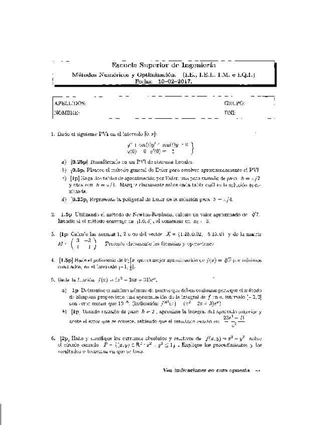 He publicado nuevos apuntes de 2º Métodos Numéricos y Optimizacion: Exámenes resueltos