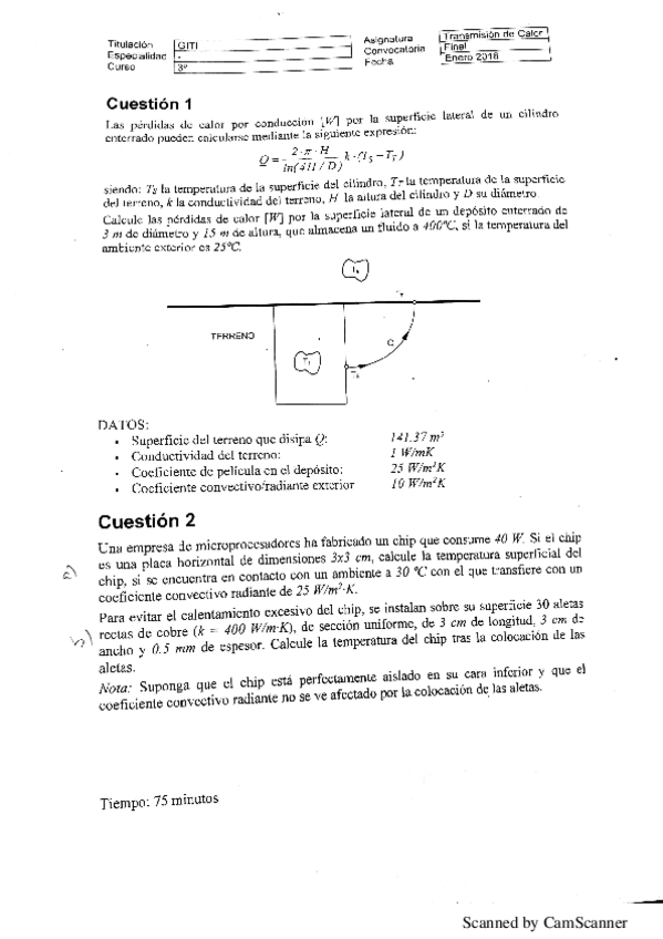 He publicado nuevos examenes de 3º Transmisión de Calor: enunciado examen enero 2018.pdf
