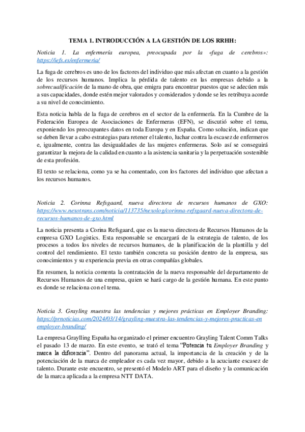 He publicado nuevos apuntes de 4º Recursos Humanos: Apuntes completos y dossier de noticias