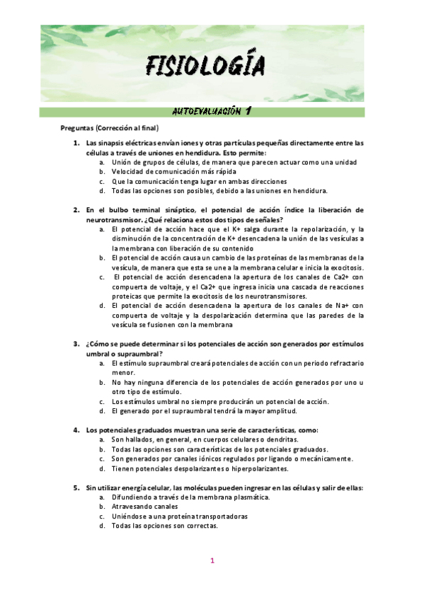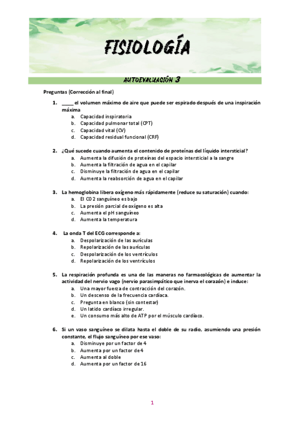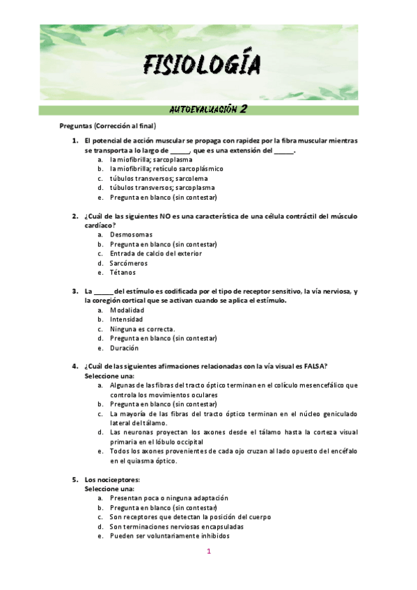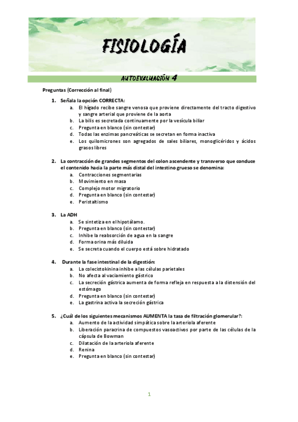 He publicado nuevos examenes de 1º Fisiología Humana General: Preguntas tipo