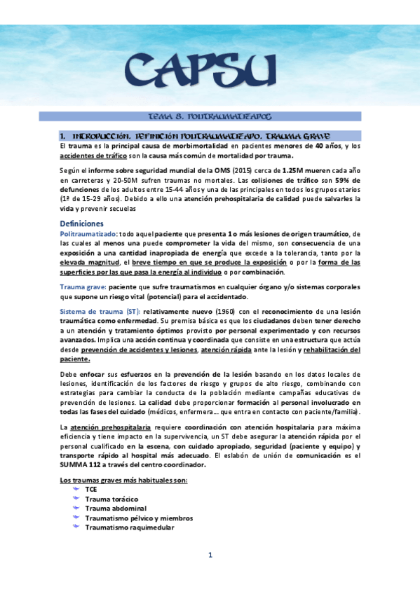 He publicado nuevos apuntes de 2º Cuidados en la Administración de Productos Sanitarios. Urgencias en Enfermería: Tercer examen. Politrauma