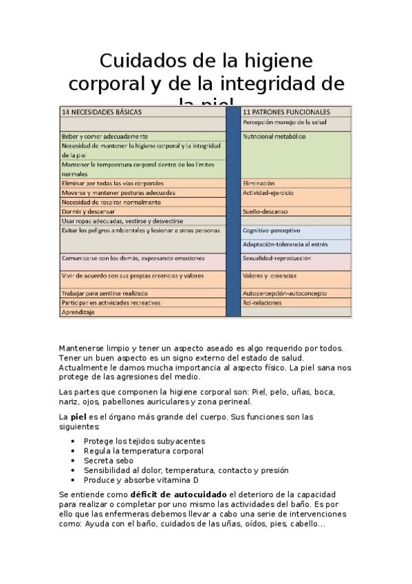 He publicado nuevos apuntes de 1º Cuidados Básicos: Cuidados de la higiene corporal y de la integridad de la piel.docx
