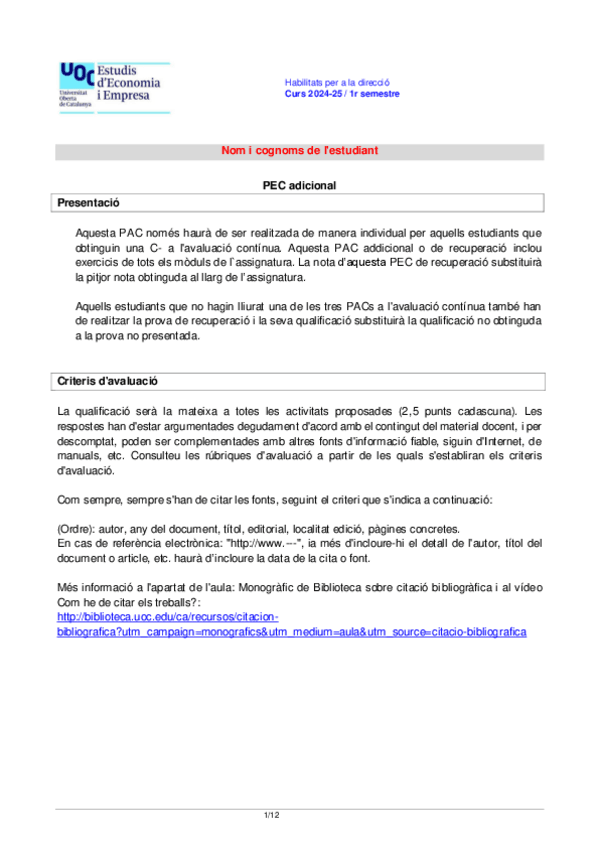 He publicado nuevos pec de 1º Habilidades para la Dirección: PAC Addicional