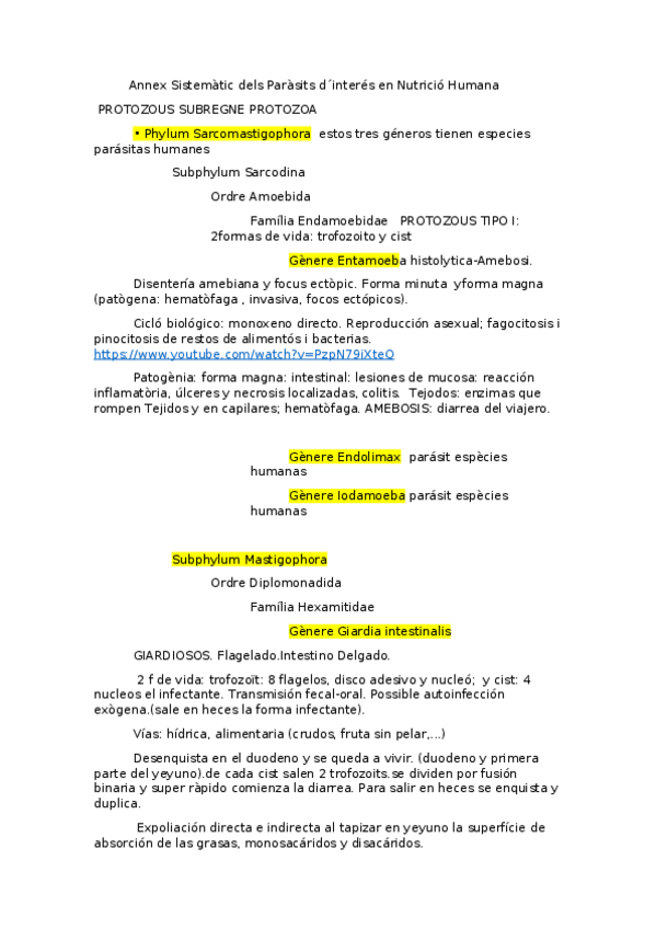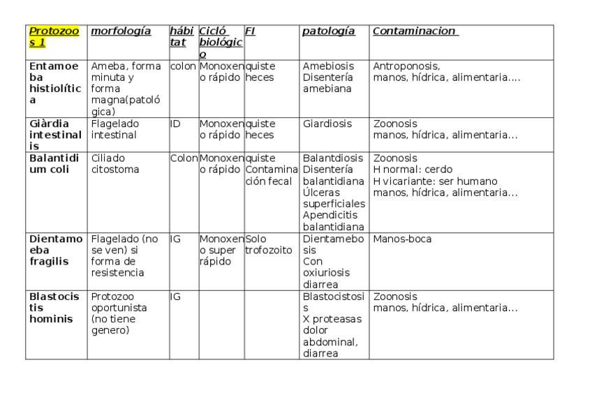 cuadros de parásitos clasificados