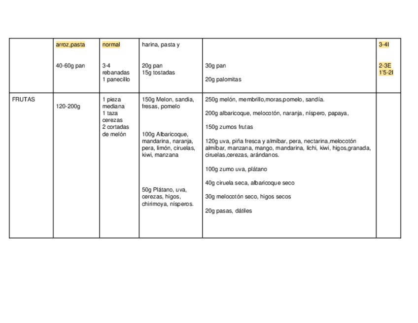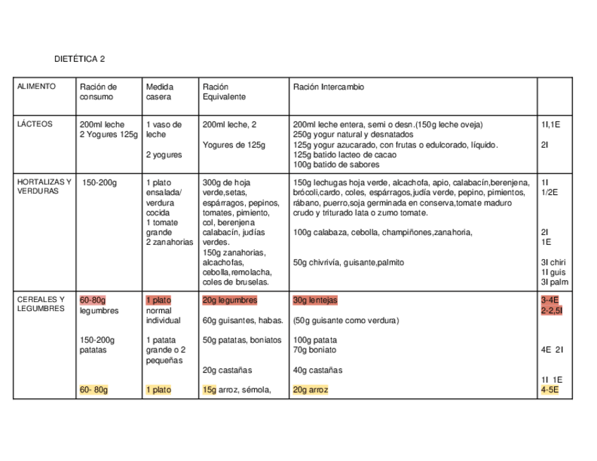 alimentos clasificados en raciones caseras,consumo,REyRI