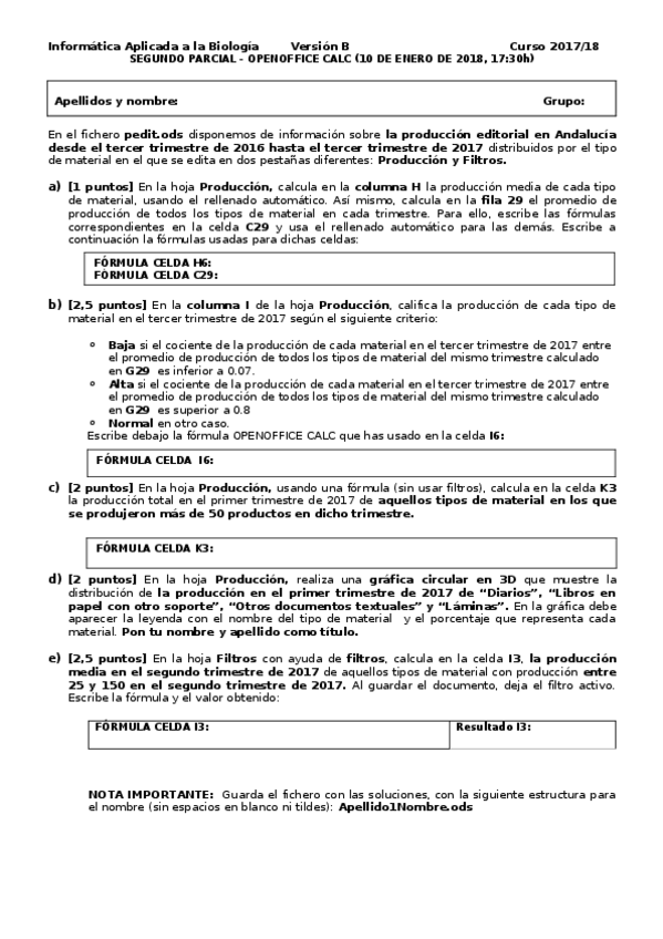 He publicado nuevos examenes de 1º Informática Aplicada a la Biología: Parte de calc corregida