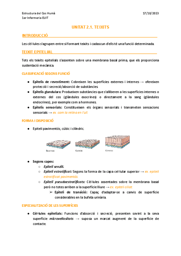Unitat 2. Teixits del cos humà i anatomia de l'aparell locomotor