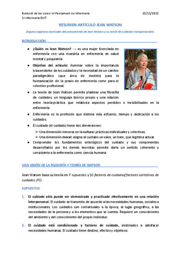 He publicado nuevos apuntes de 1º Evolució de les Cures i el Pensament en Infermeria: Resumen-articulo-Jean-Watson.pdf