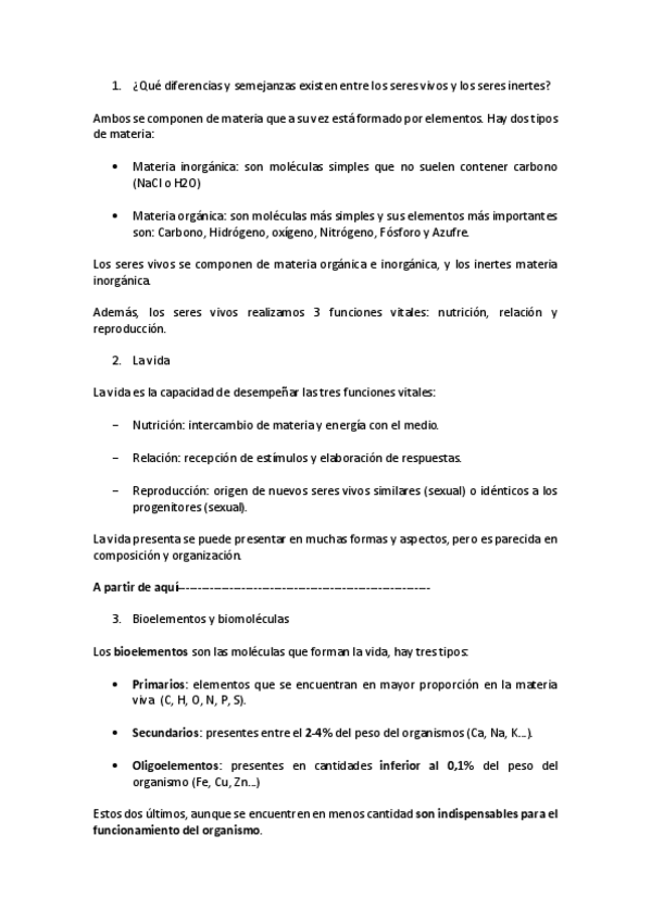TEMARIO BIOLOGIA 2ºBACH Completo en 18 páginas. Conceptos esenciales con definiciones aprobadas por la PEVAU para el bloque de teoría