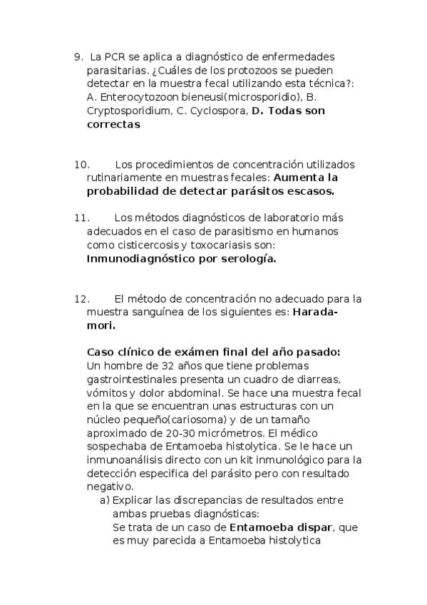 He publicado nuevos examenes de 3º Microbiología y Parasitología Clínicas: Preguntas test examen Para HUELI.docx