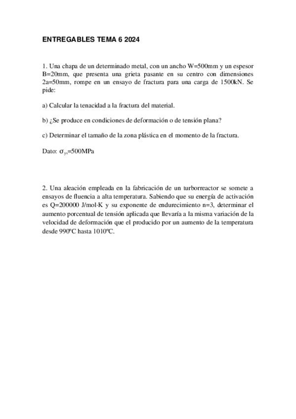 He publicado nuevos ejercicios de 2º Ciencia de Materiales: Problemas-fluencia-tema-6.pdf