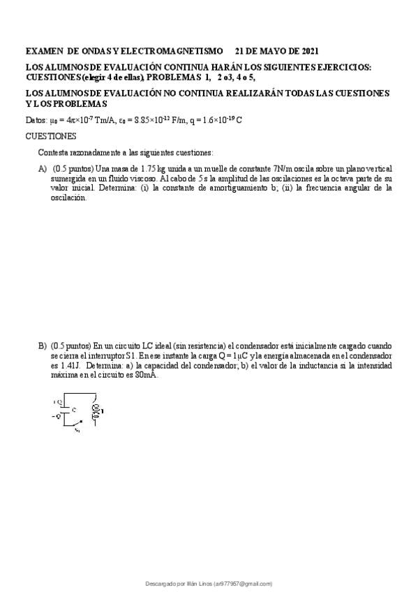 He publicado nuevos examenes de 1º Ondas y electromagnetismo: examen-junio-21.pdf