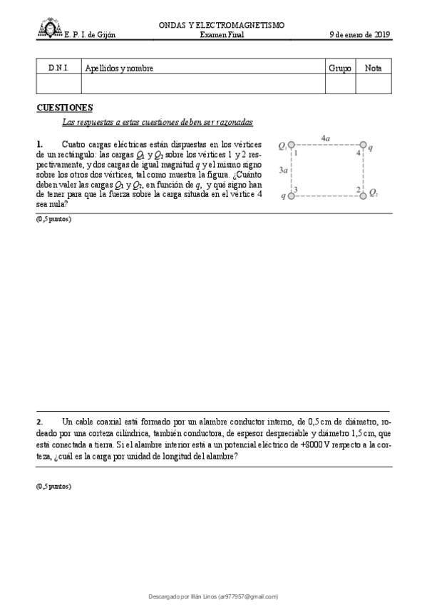 He publicado nuevos examenes de 1º Ondas y electromagnetismo: final-mayo-2019-respuestas.pdf