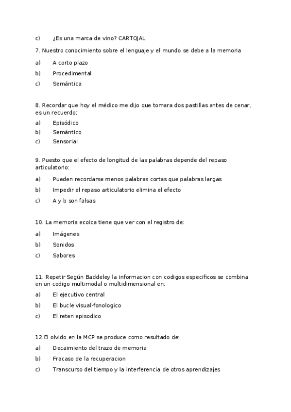 He publicado nuevos examenes de 2º Psicologia de la Memoria, de la Percepcion y de la Atencion: Examen-memoria.odt