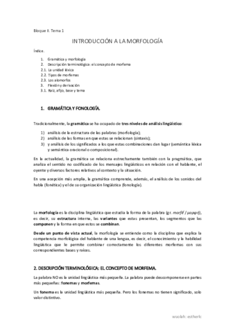 Bloque 2. Morfología del español.